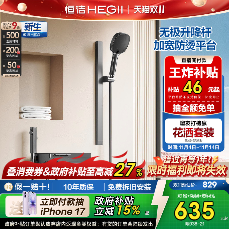 [直播间补贴]恒洁钢琴按键花洒套装淋浴器平台浴室卫生间龙头Y57