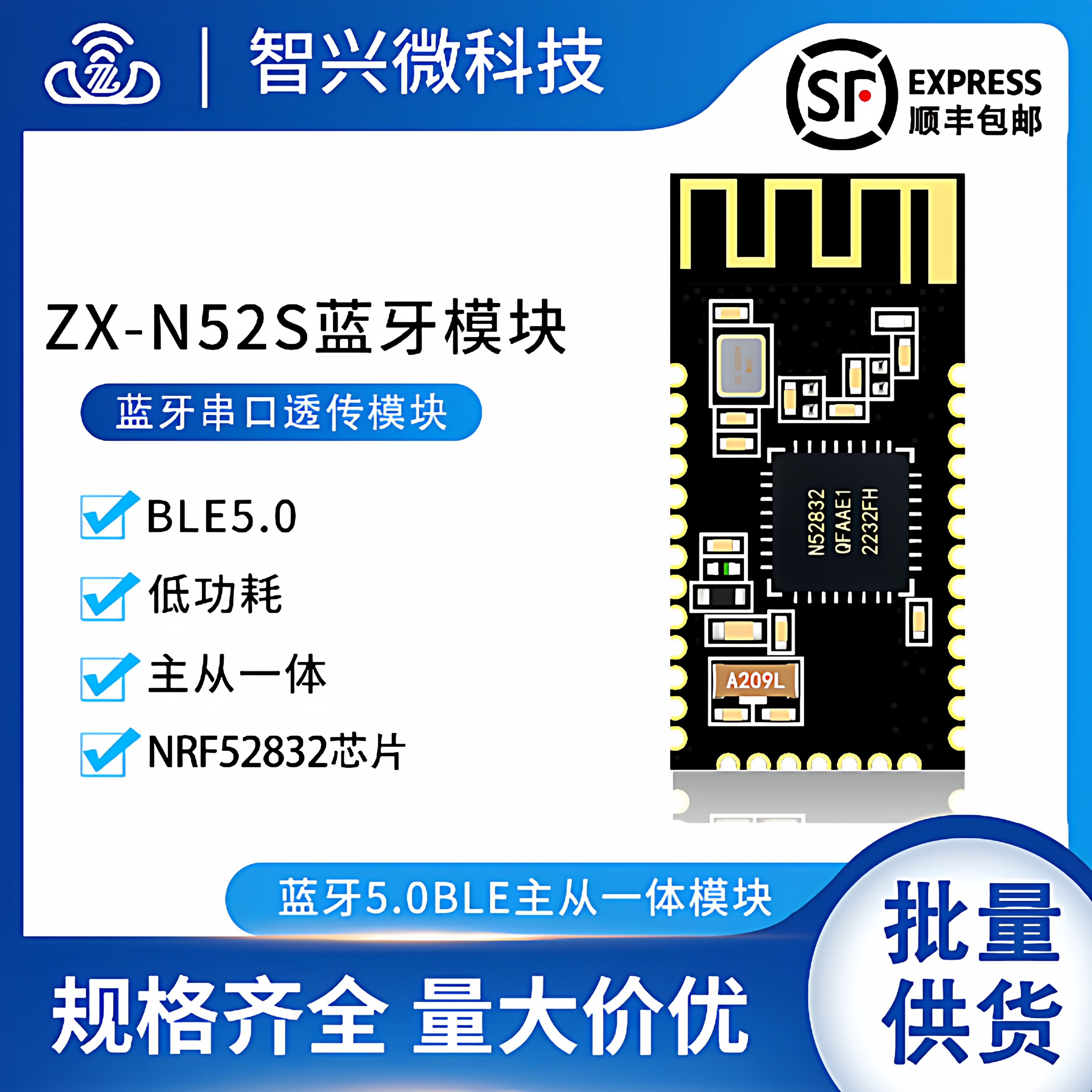 ZX-N52S蓝牙模块nrf52832芯片低功耗蓝牙串口透传ibeacon主从一体