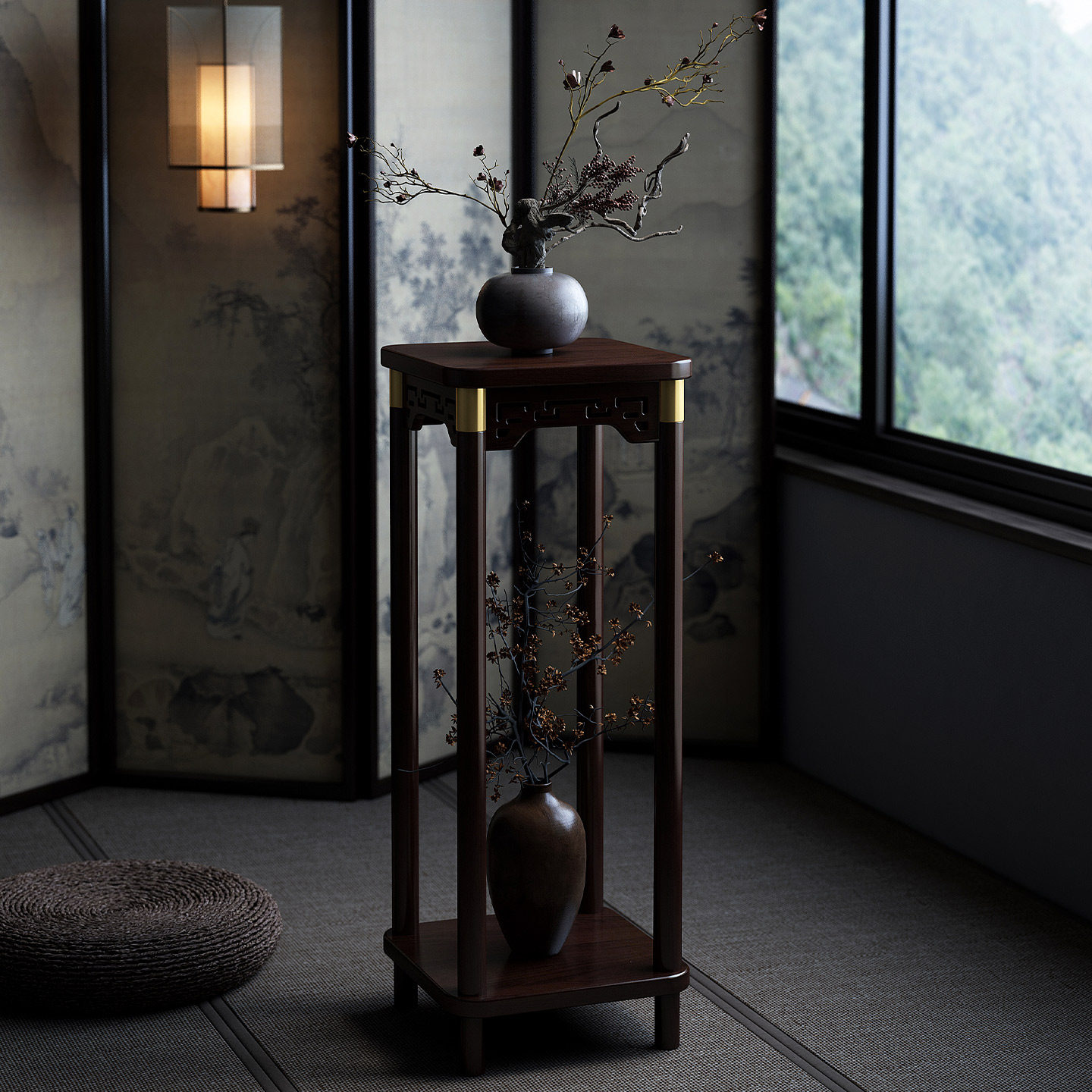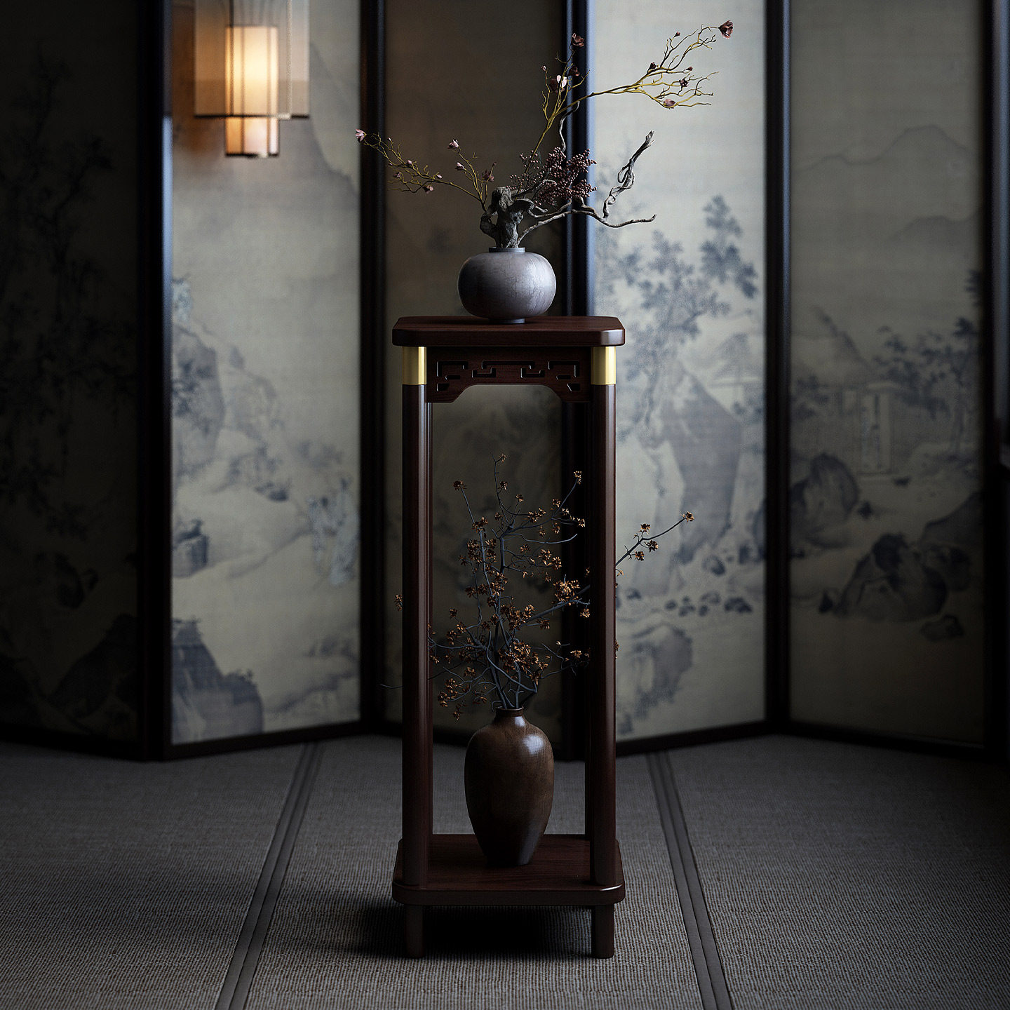 博古架实木中式花架子茶室仿古花盆置物架室内落地式宋代美学花台