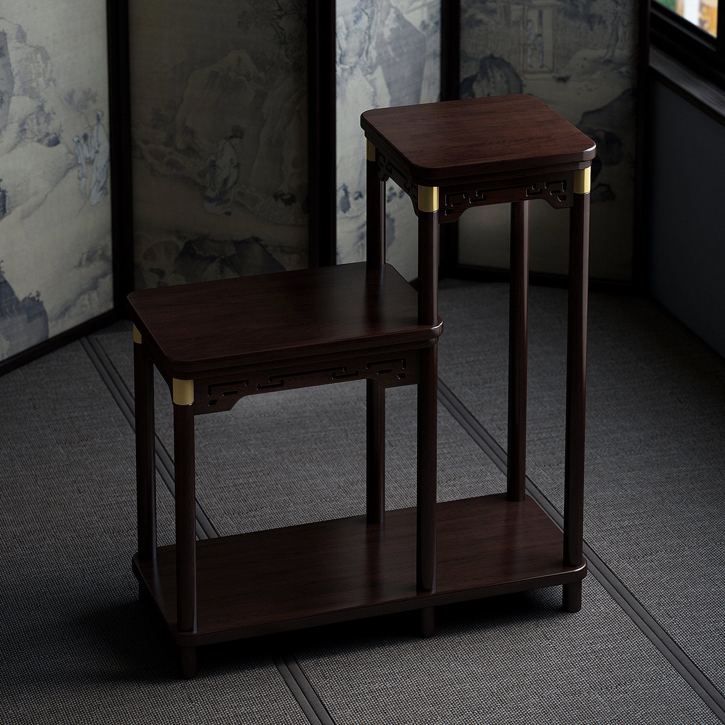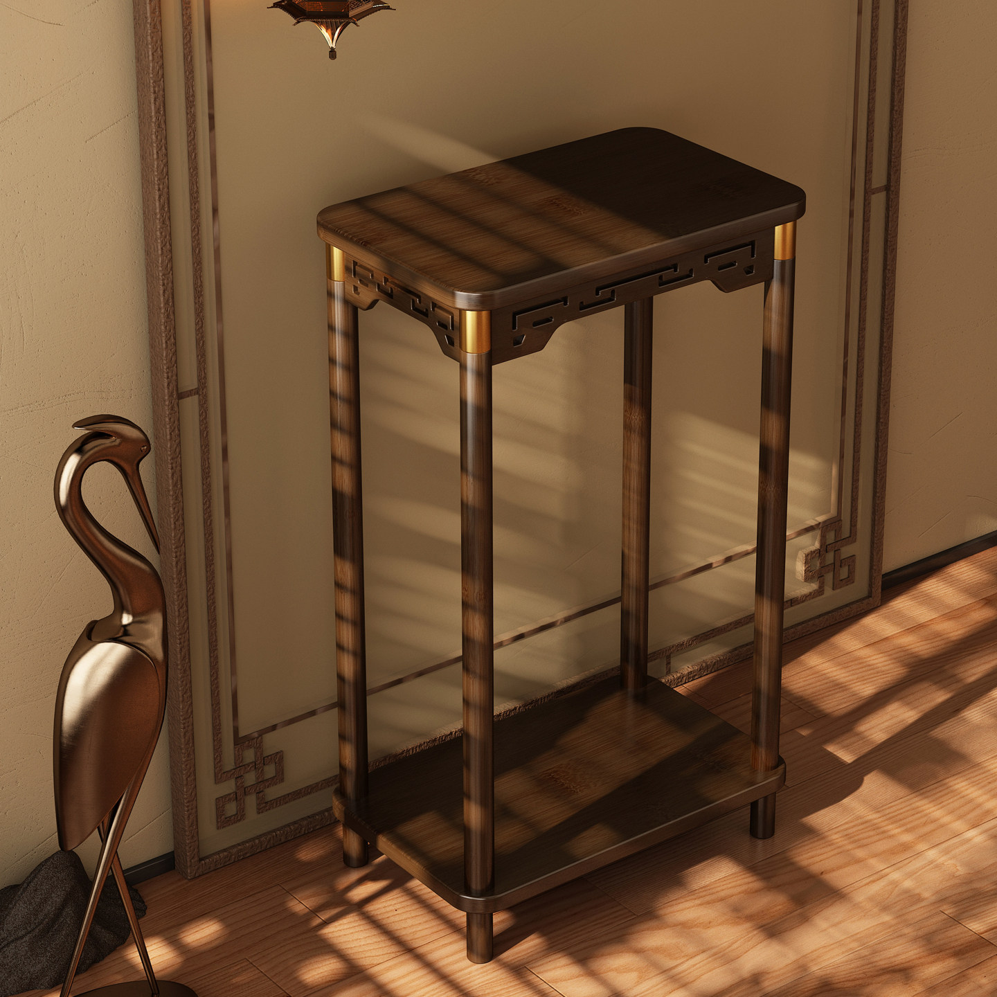 博古架实木中式花架落地式宋徽宗花盆放置架茶室宋代美学仿古花几