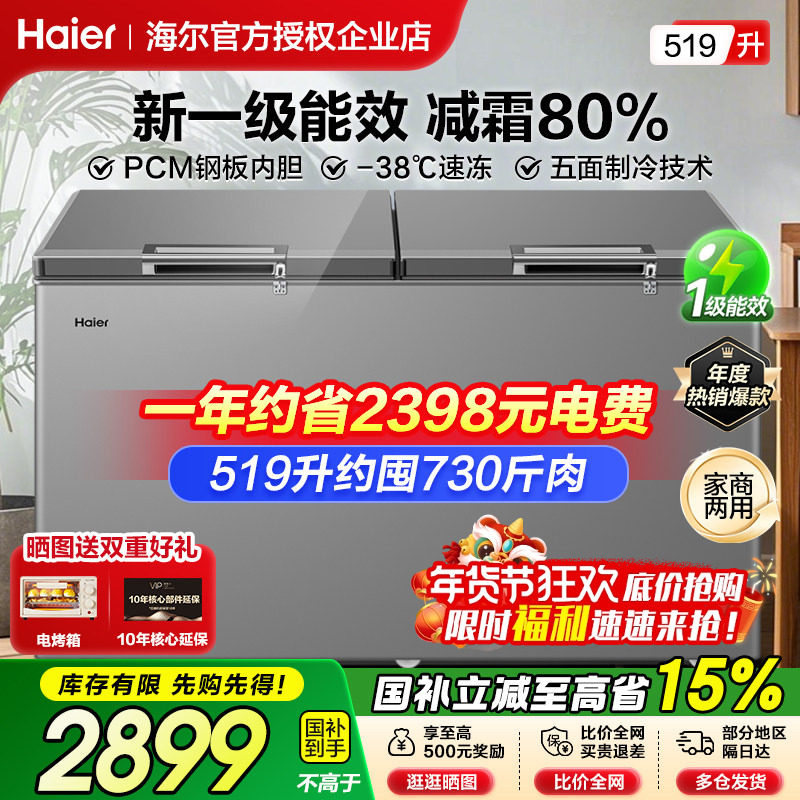 海尔冰柜商用冷柜300/429/519升大容量家用冷藏冷冻超低温速冻柜