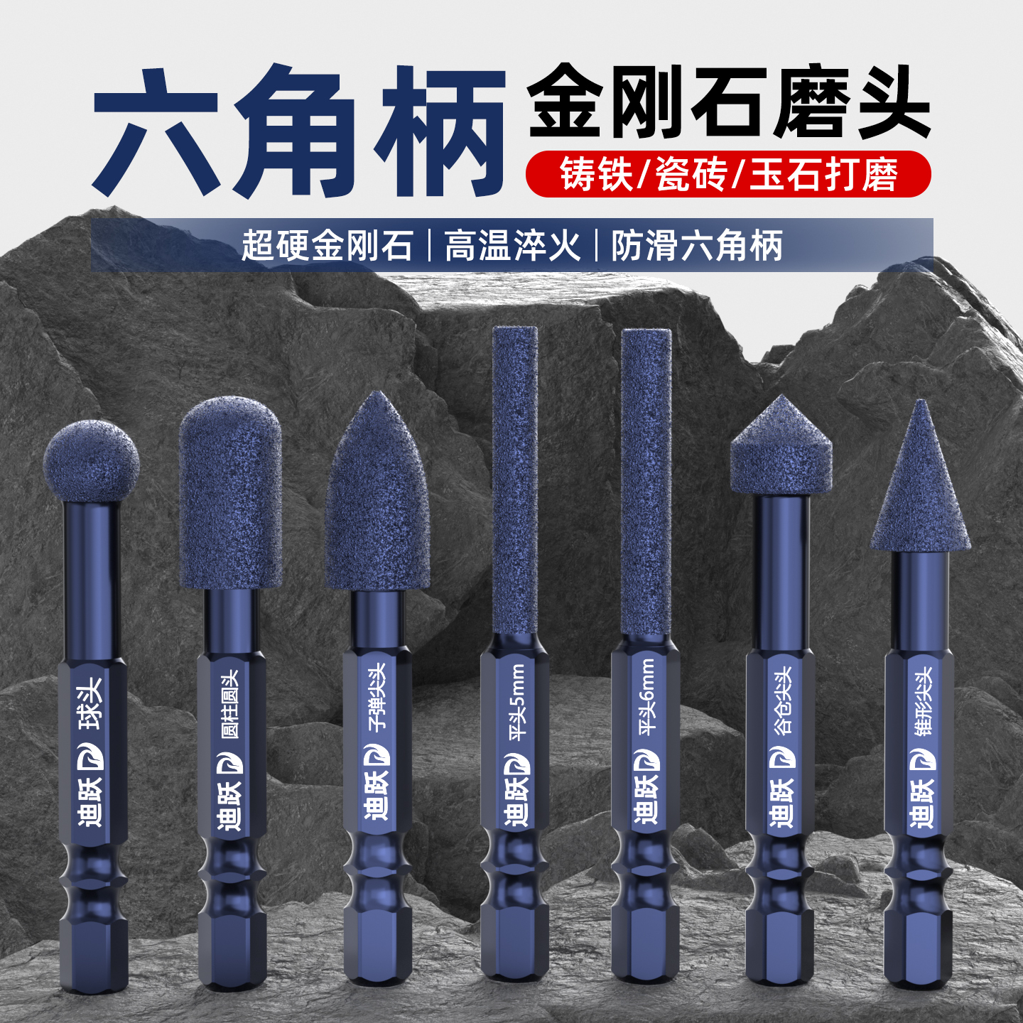 迪跃六角柄金刚石磨头铸铁瓷砖玉石手电钻打磨钻头内孔抛光旋转锉