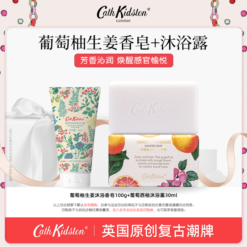 英国Cath Kidston葡萄柚生姜肥皂男女洗澡沐浴香皂+沐浴露小样装