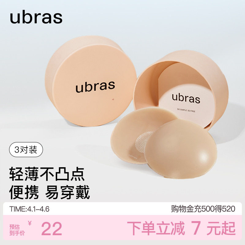 ubras果冻硅胶乳贴女婚纱用防走光隐形防凸点胸贴轻薄内衣3对装