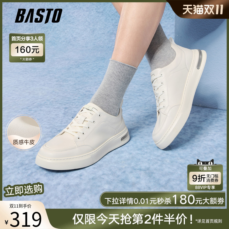 百思图2025秋季商场新款牛皮厚底板鞋小白鞋男运动休闲鞋L3389CM5