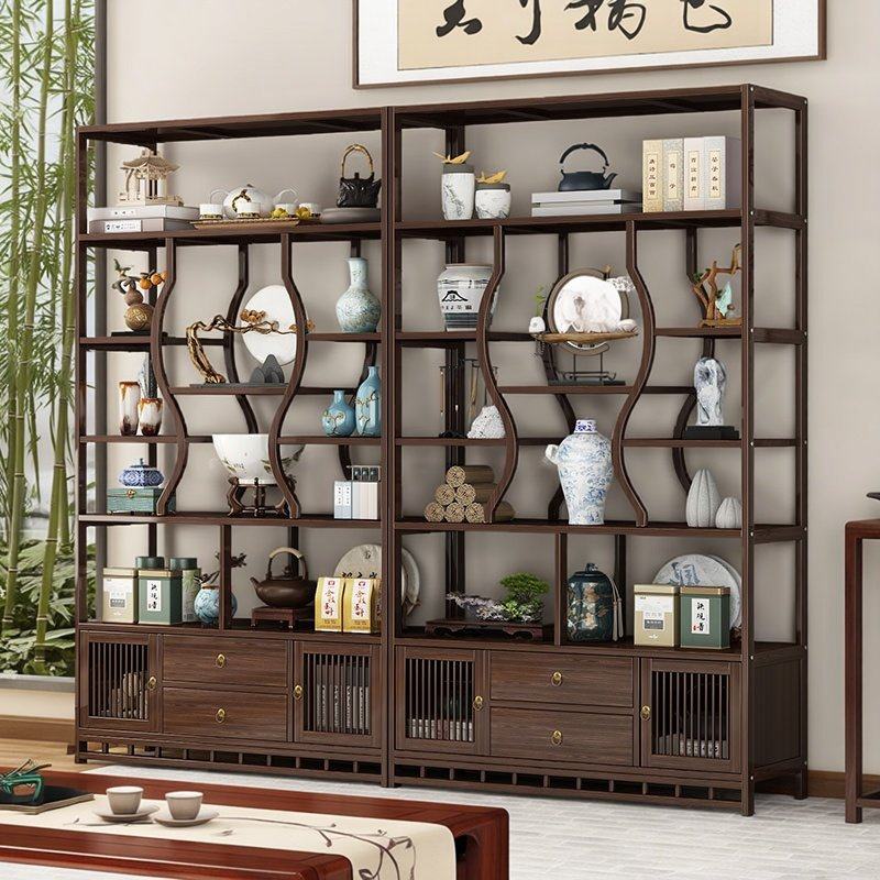 新中式博古架客厅书房展示柜多层收纳置物架茶具楠竹多宝格摆件架