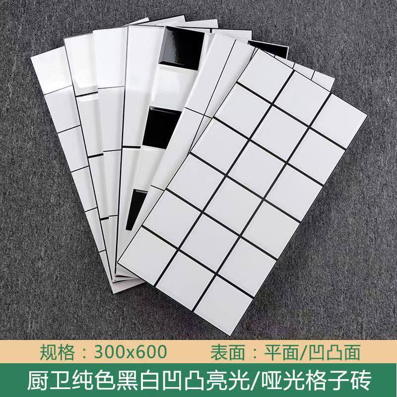 北欧白色格子瓷砖哑光面包砖卫生间小白砖黑色墙砖釉面300600地砖