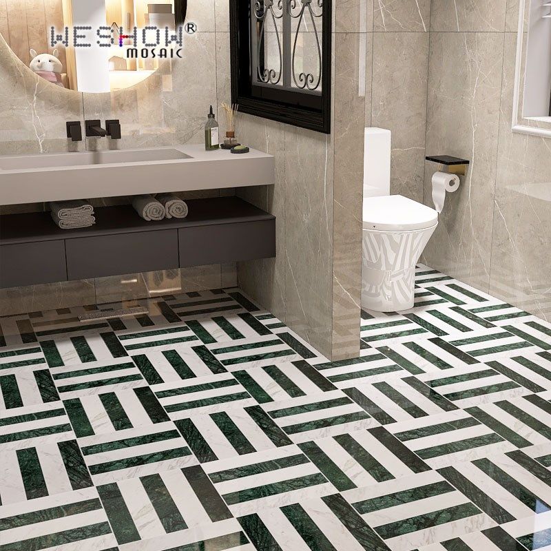 卫生间防滑瓷砖复古墨绿大理石背景墙横竖拼阳台庭院大花绿墙地砖