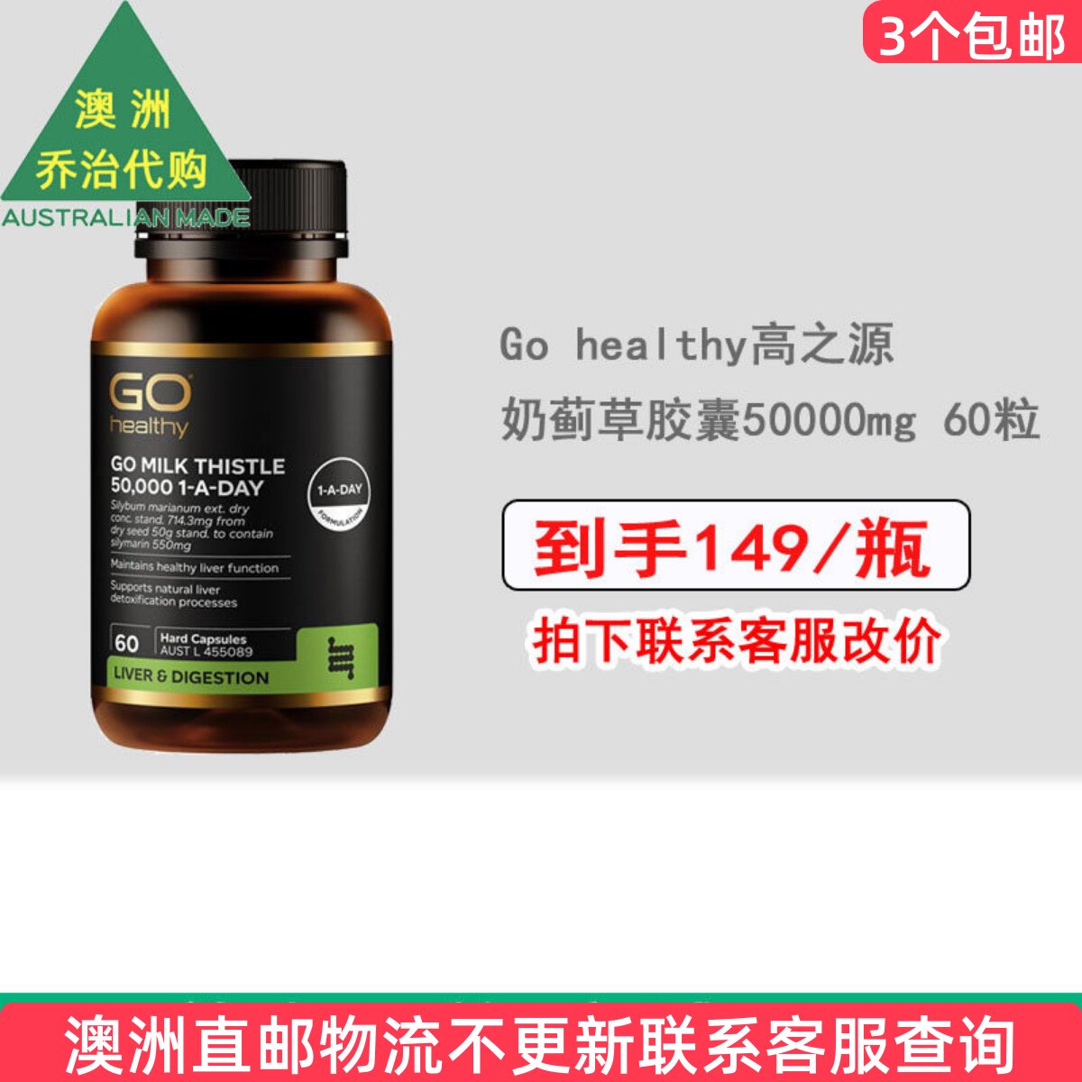 澳大利亚 GO Healthy高之源奶蓟草50000mg素食胶囊 60粒 GH028