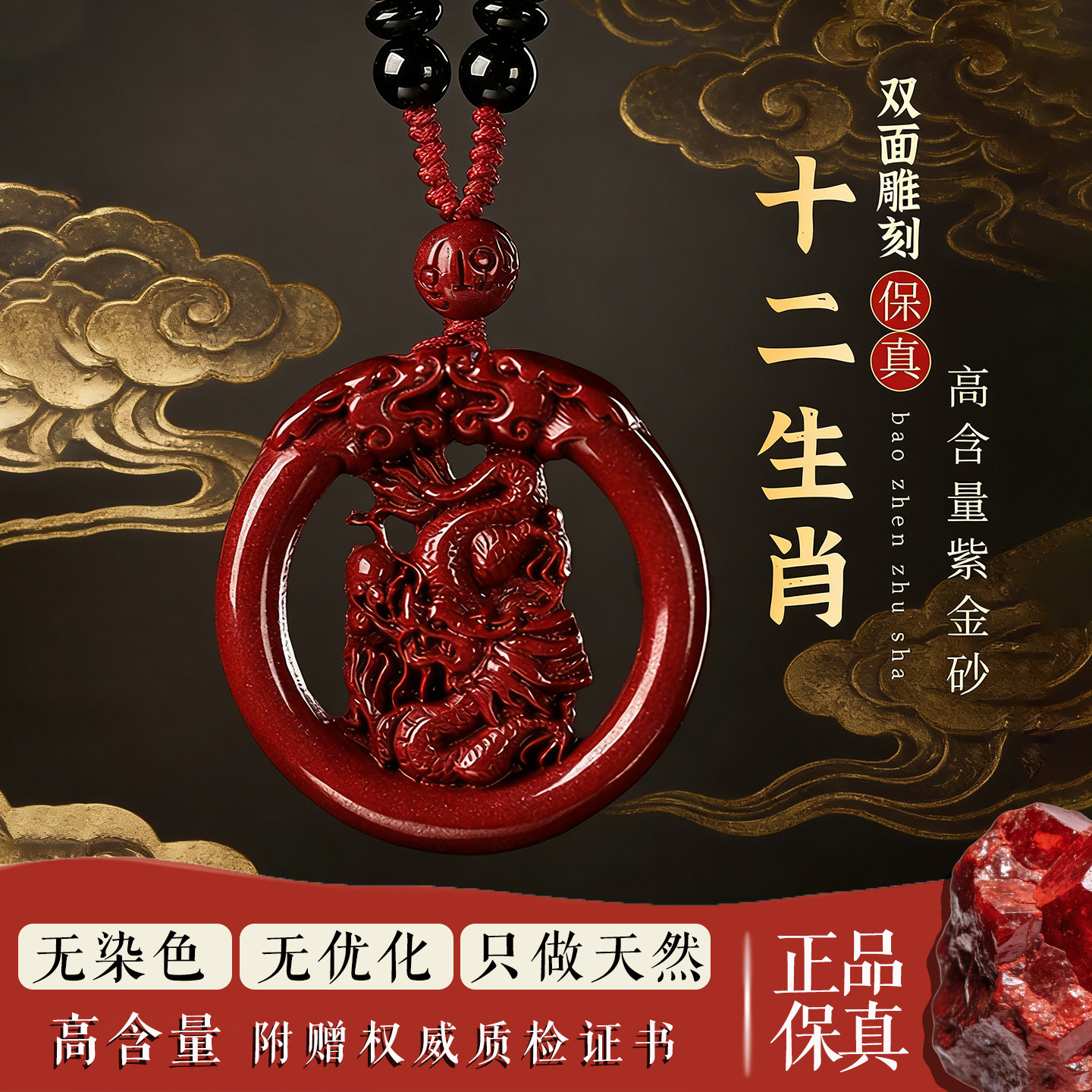 十二生肖属鸡保真朱砂吊坠男女挂件本命年礼物项链官方旗舰店正品