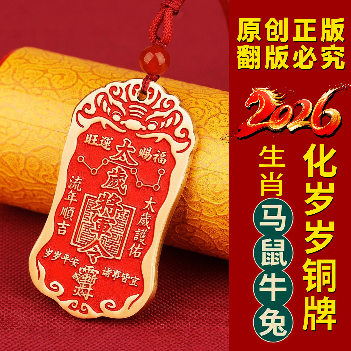2026马年文哲大将军吊坠太岁牌本命年属马鼠牛兔鸡佩戴钥匙扣挂件