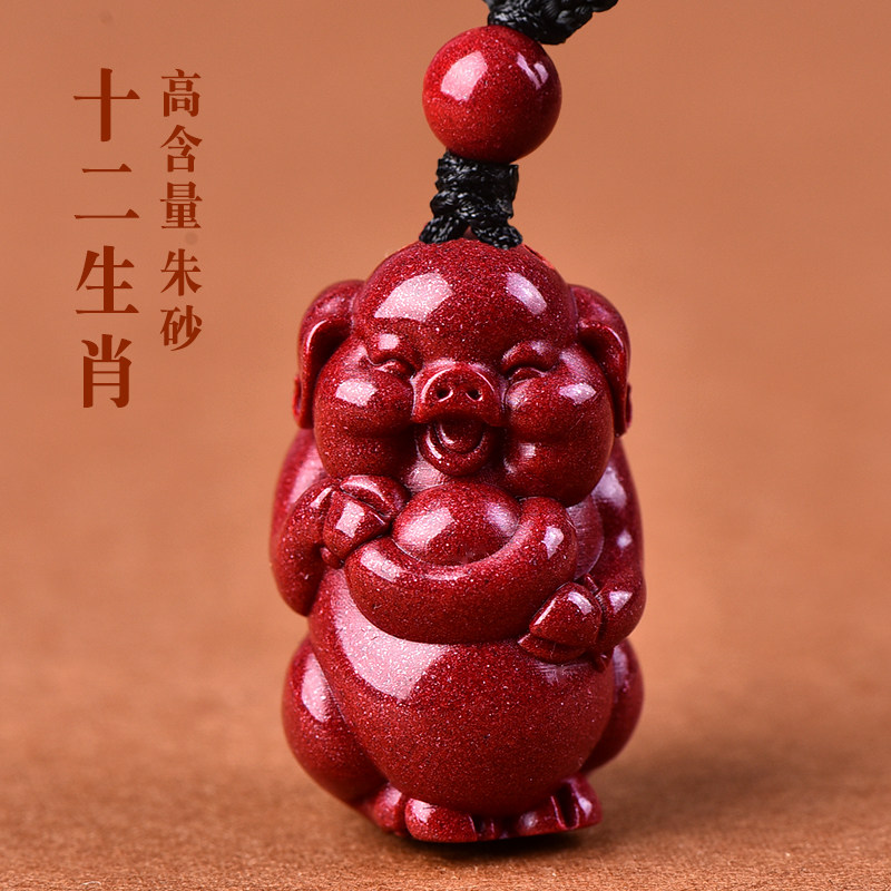 正品天然朱砂十二生肖吊坠女士属马本命年蛇羊猴鸡狗猪护身符挂件