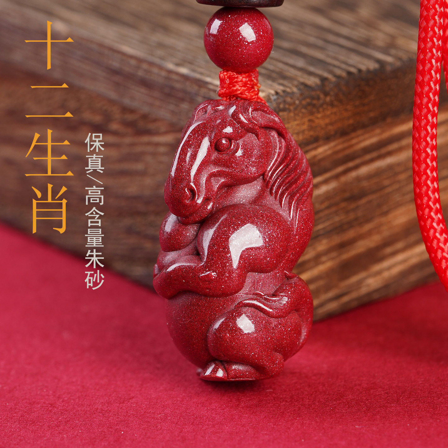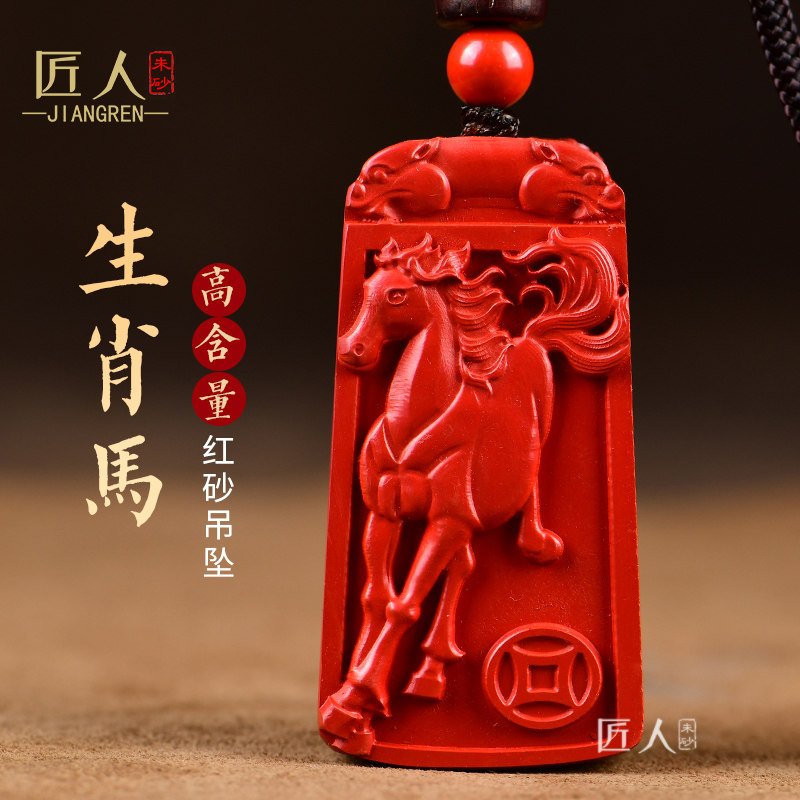 正品天然朱砂十二生肖吊坠属马本命年鼠龙蛇羊猴鸡狗猪护身符挂件