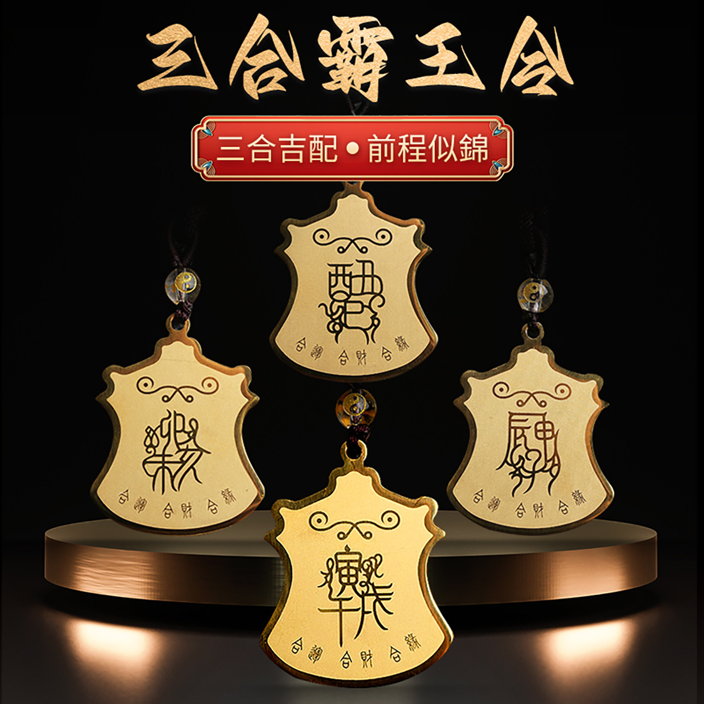 2026年三合霸王令生肖吊坠本命年属马鼠牛兔鸡虎龙蛇猴羊猪狗挂件