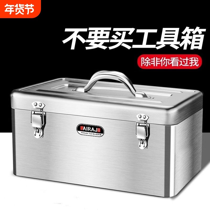 不锈钢工具箱多功能车载铁皮箱子家用五金收纳箱不绣钢家庭大容量