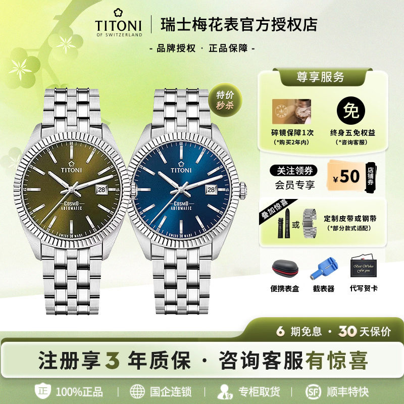 Titoni瑞士梅花表宇宙系列手表夜光日历时尚休闲商务自动机械男表