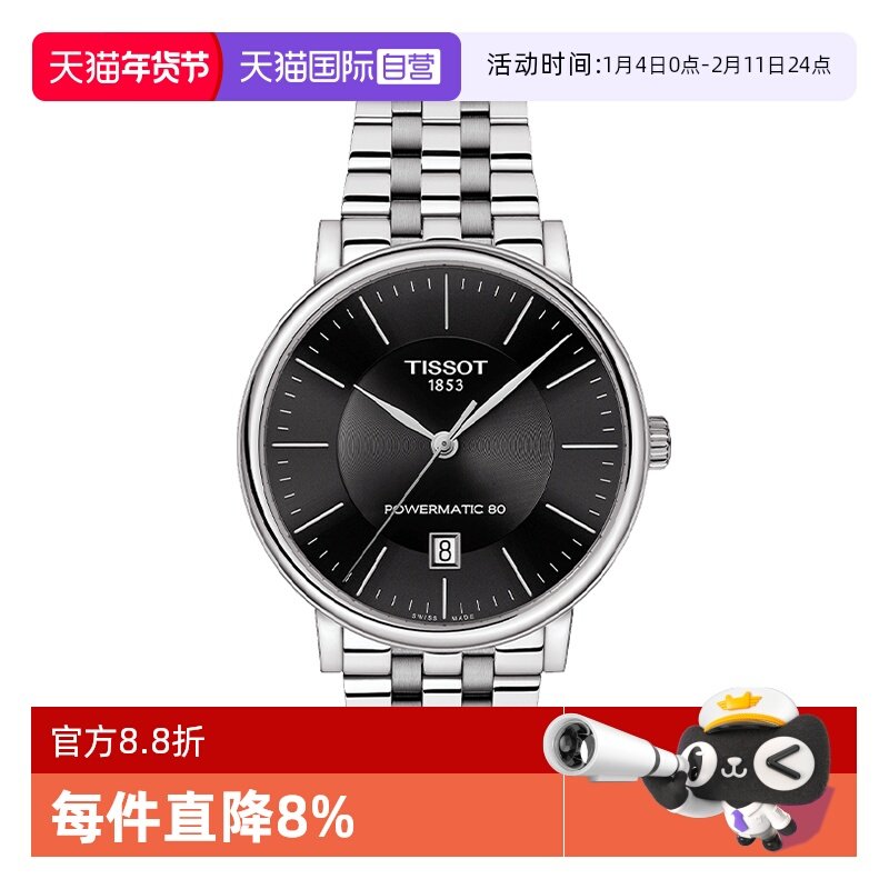 香港直邮【海外版】天梭TISSOT卡森臻我系自动机械男表T122.407.1