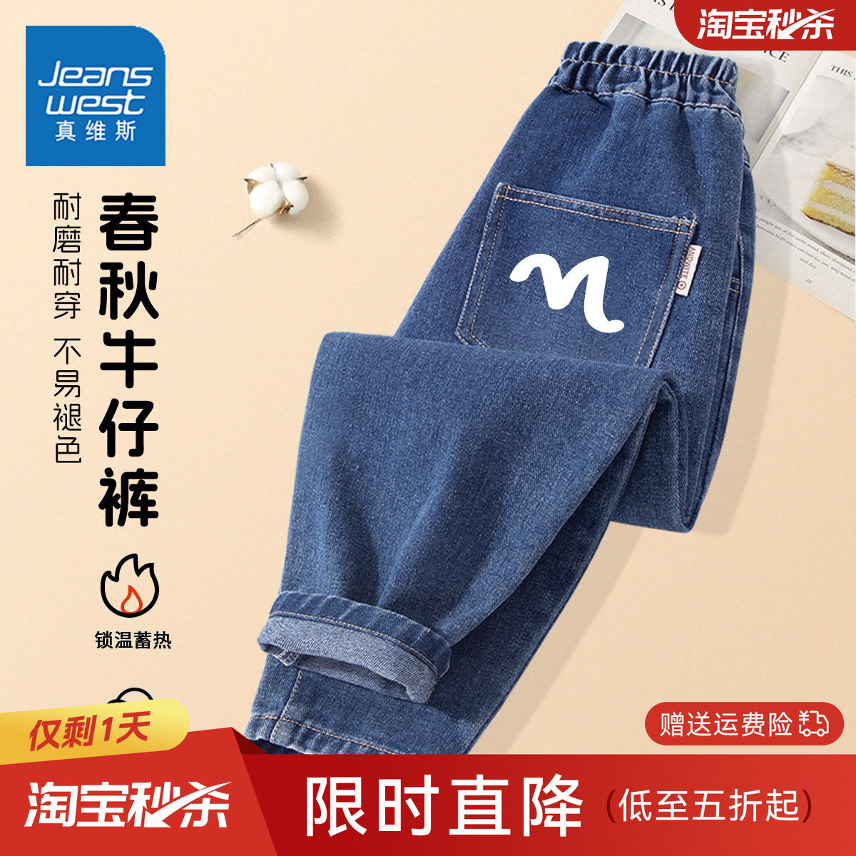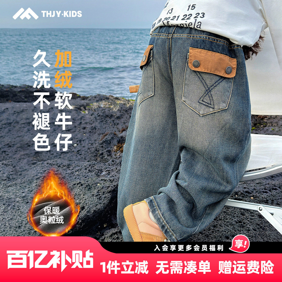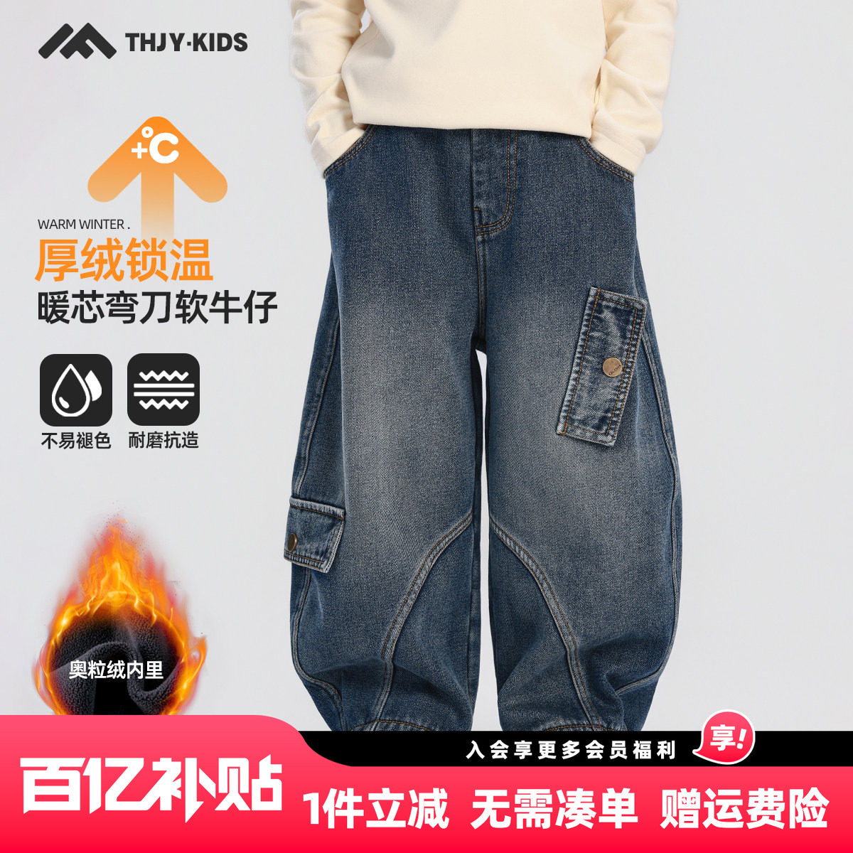 - 冬加绒牛仔裤