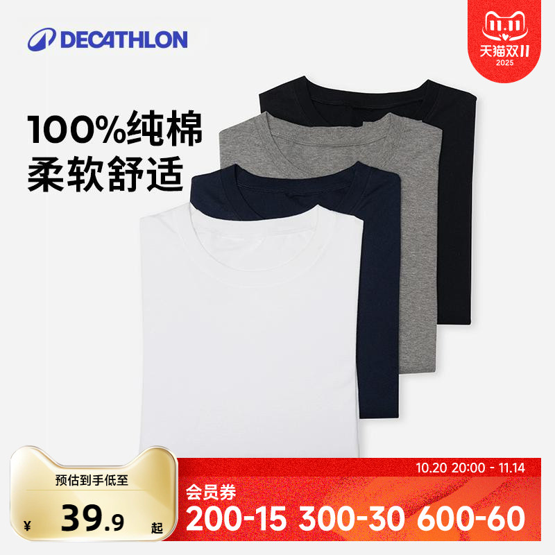 迪卡侬短袖t恤白色打底衫男内搭透气半袖纯色上衣体恤衫55253SAT3