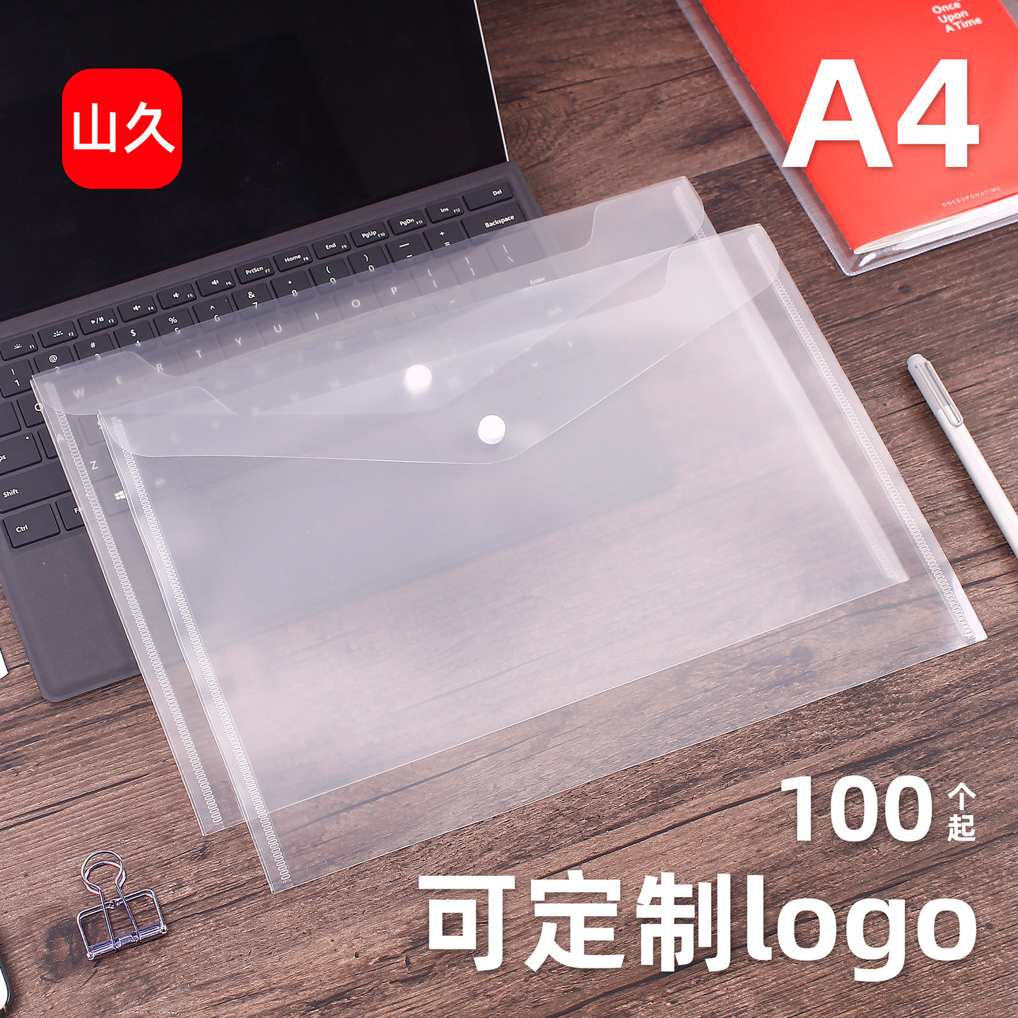 A4文件袋透明商务办公用品定制印LOGO公文塑料加厚大容量按扣试卷收纳袋学生用档案资料袋文件夹包50个100个