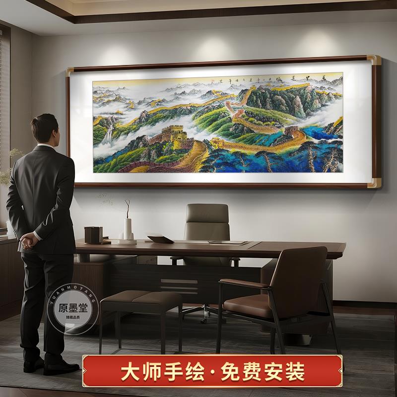 2025新款万里长城画靠山图办公室山水画客厅挂画大展宏图装饰字画