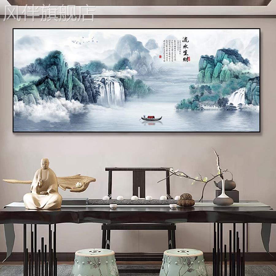 客厅装饰画沙发背景墙挂画办公室山水画靠山图聚财风水画流水生财