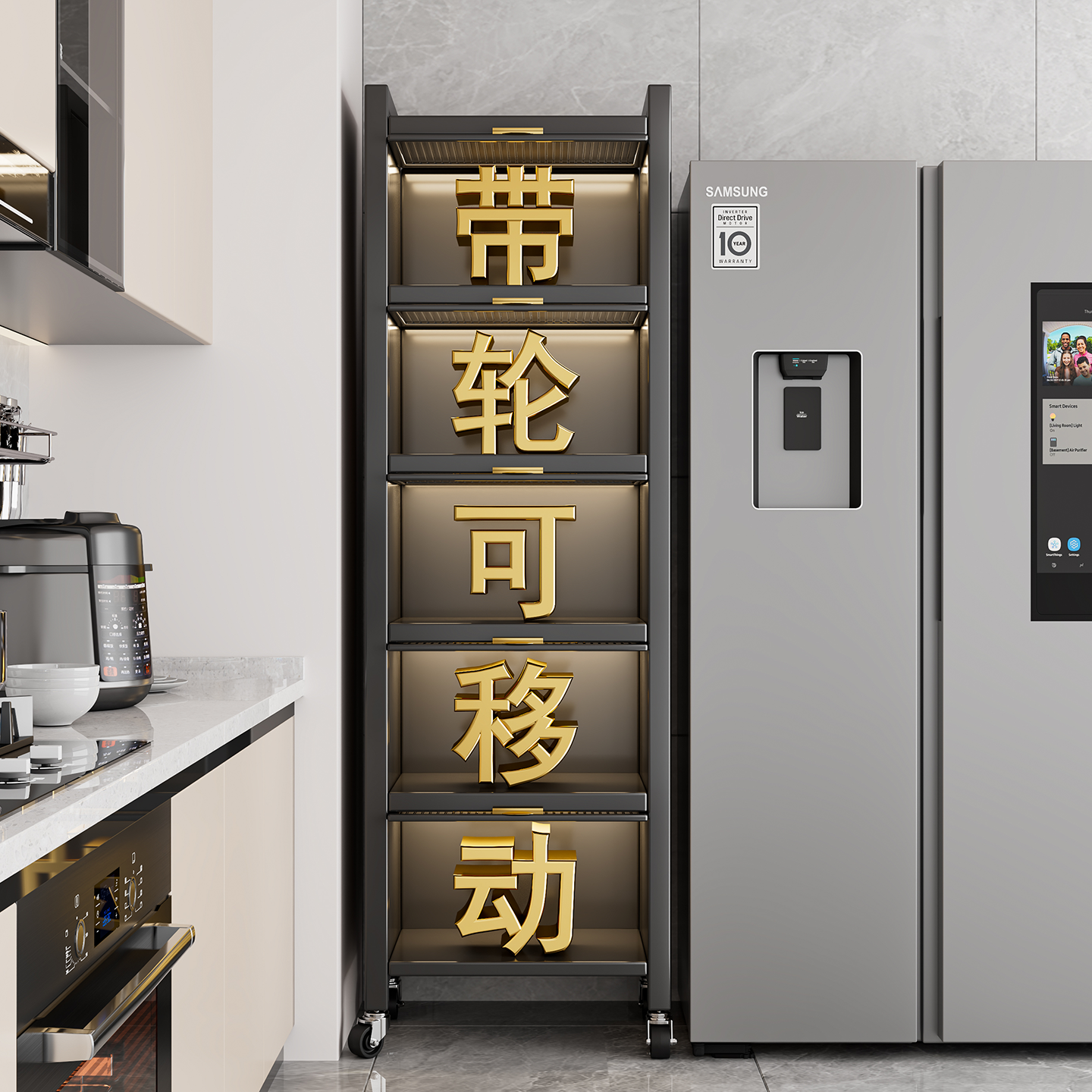 厨房储物柜冰箱侧边置物架多层落地一体可移动微波炉窄缝收纳柜子
