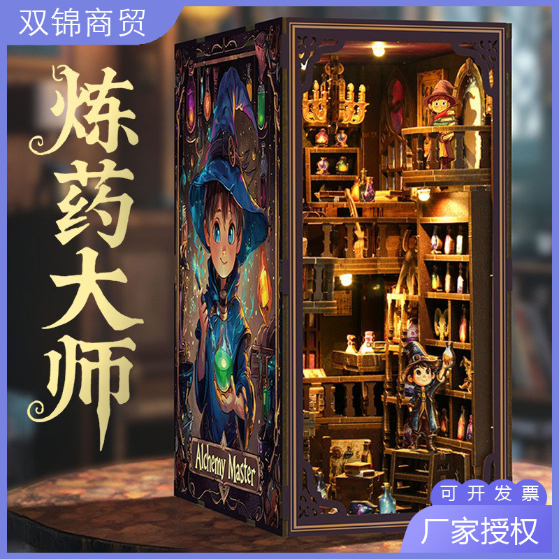 爆款复古炼药大师书立木质手工拼装diy小屋模型节生日礼物送男女
