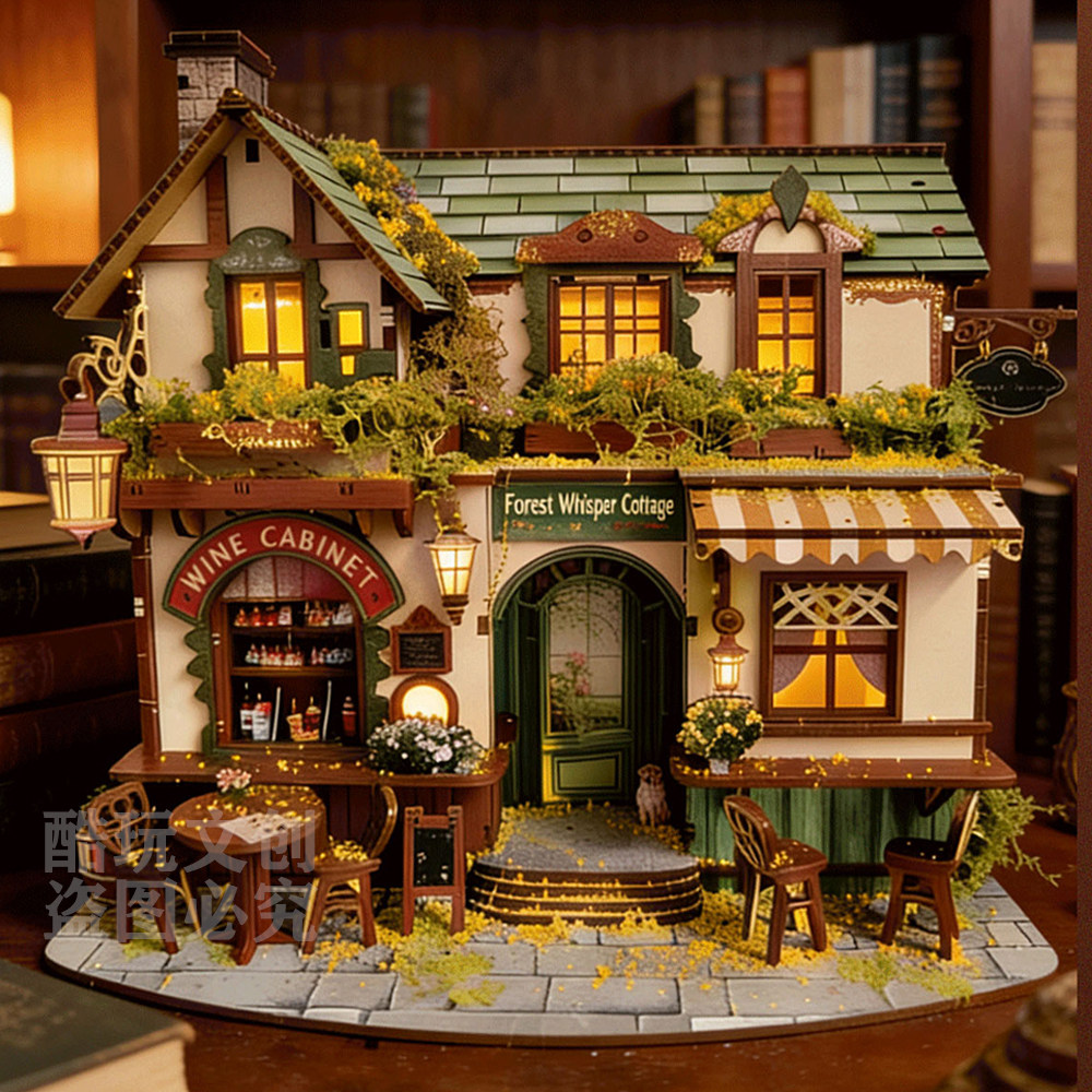 复古转角小酒馆手工拼装diy小屋木质筑模型桌面摆件轻奢高档礼物
