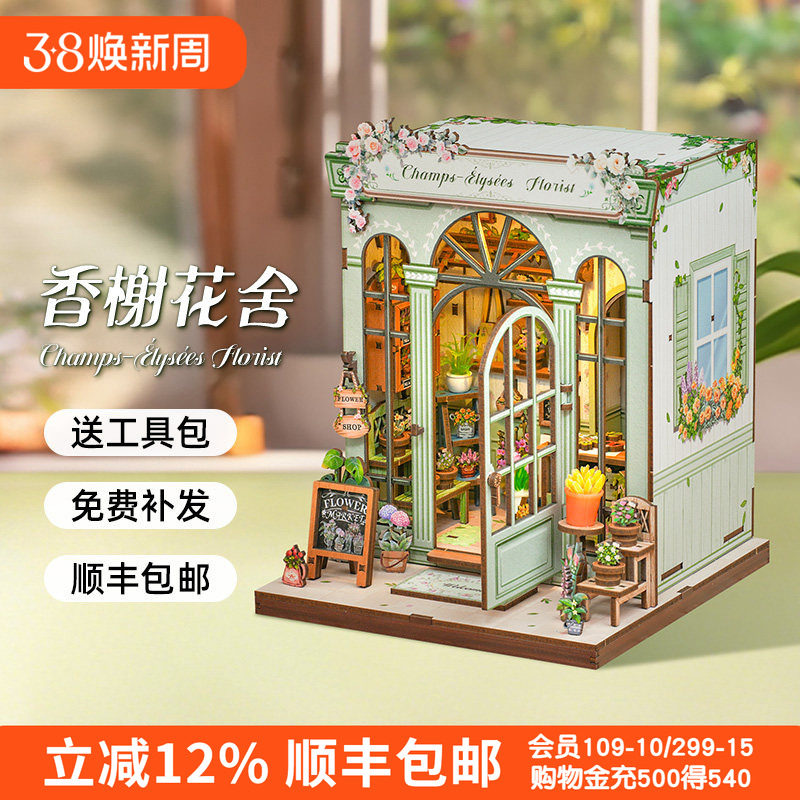 CuteBee/新品香榭花舍手工拼装diy小屋书立拼装微缩模型摆件礼物