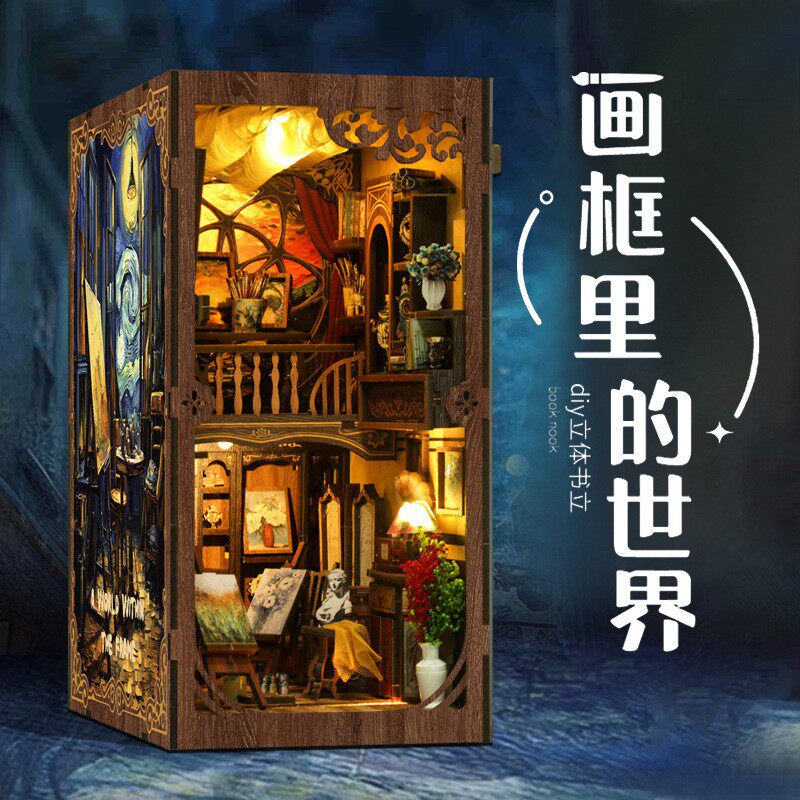 复古画框里的世界书立木质手工拼装diy小屋模型儿童节礼物送男女