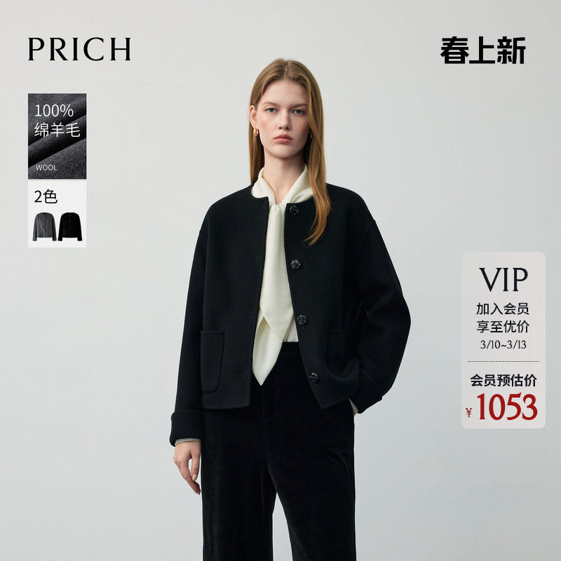 【100%绵羊毛】PRICH复古格纹双面毛呢大衣冬长款外套女