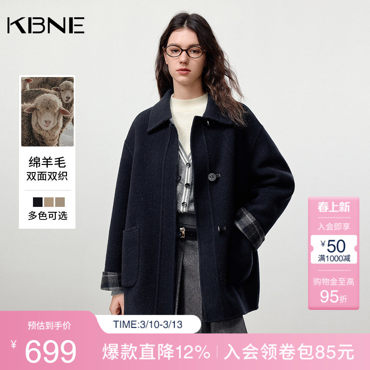 [时光毛呢]KBNE双面格纹双面毛呢大衣女2025冬季新款羊毛大衣外套
