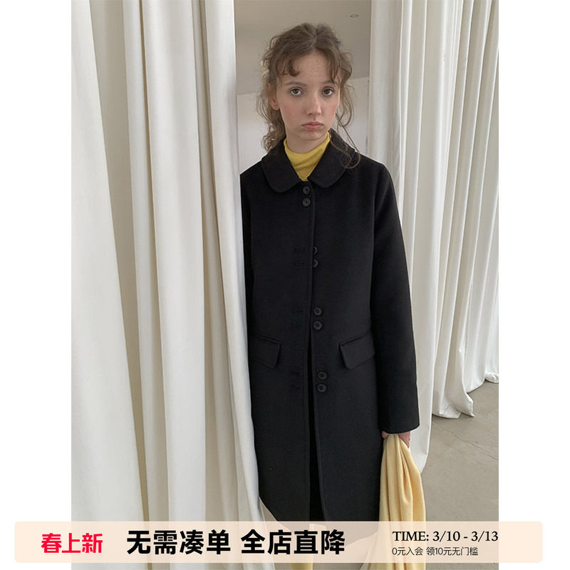 【清仓】UNRETRO 法式复古娃娃领双面毛呢大衣女小个子合身呢外套