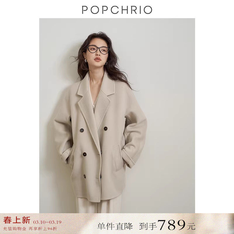 POPCHRIO欧可芮【明星同款】电影节大衣羊毛双面毛呢大衣长款外套
