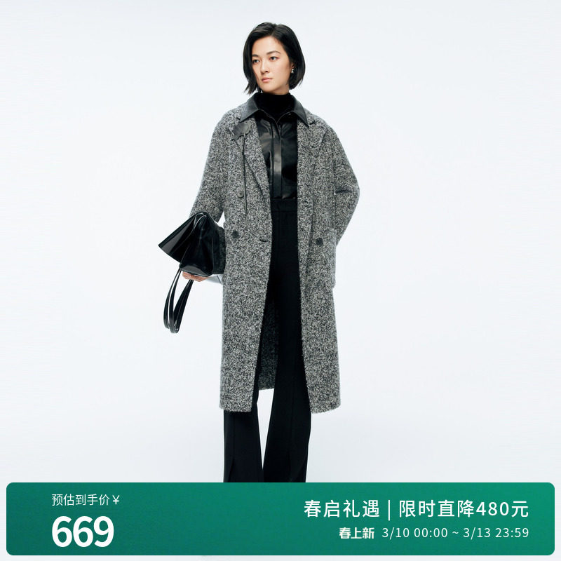 婉甸2025年冬季新品杂花灰羊驼毛双面毛呢大衣女外套1244C11ZY3