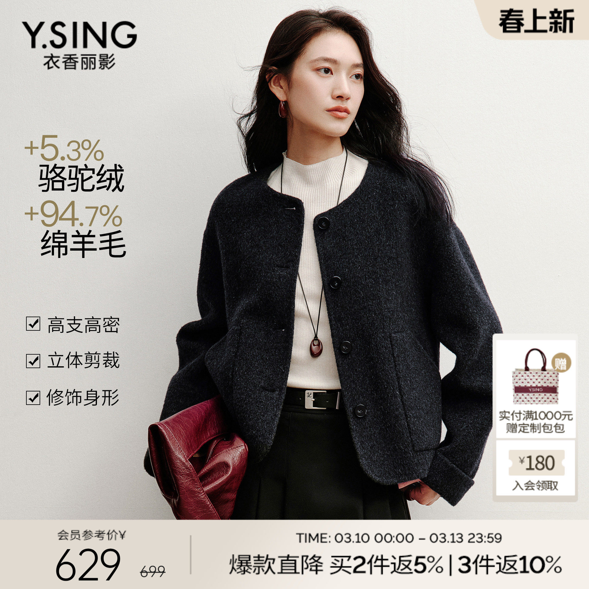衣香丽影骆驼绒羊毛外套女短款2025年冬装新款小个子双面毛呢大衣