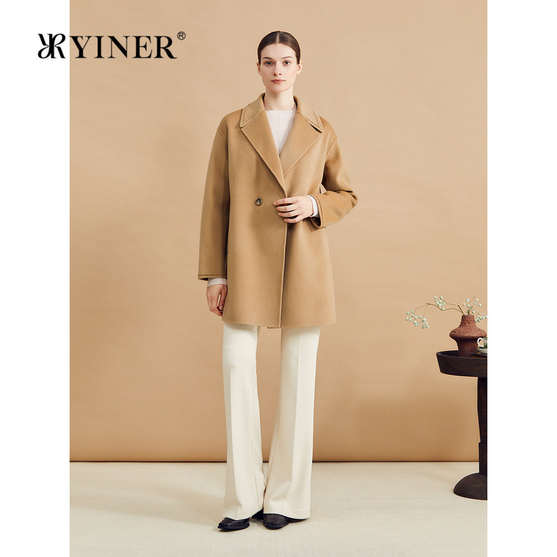 【美丽诺羊毛】YINER音儿专选女装冬季时尚双面毛呢大衣驳领外套