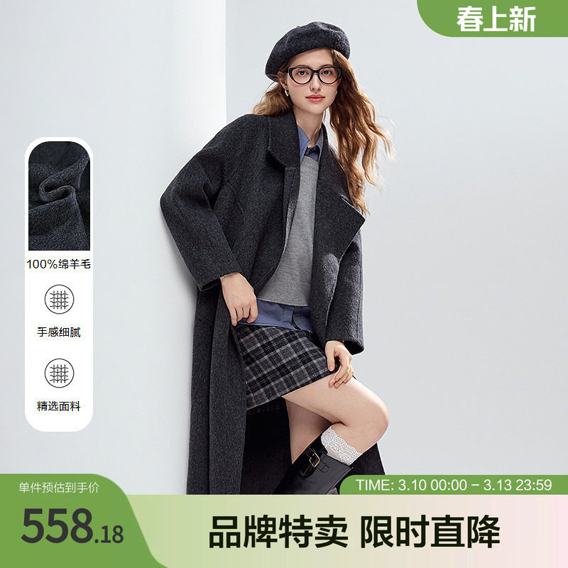 【100绵羊毛】Goodland美地女装冬季时尚双面毛呢大衣美拉德外套