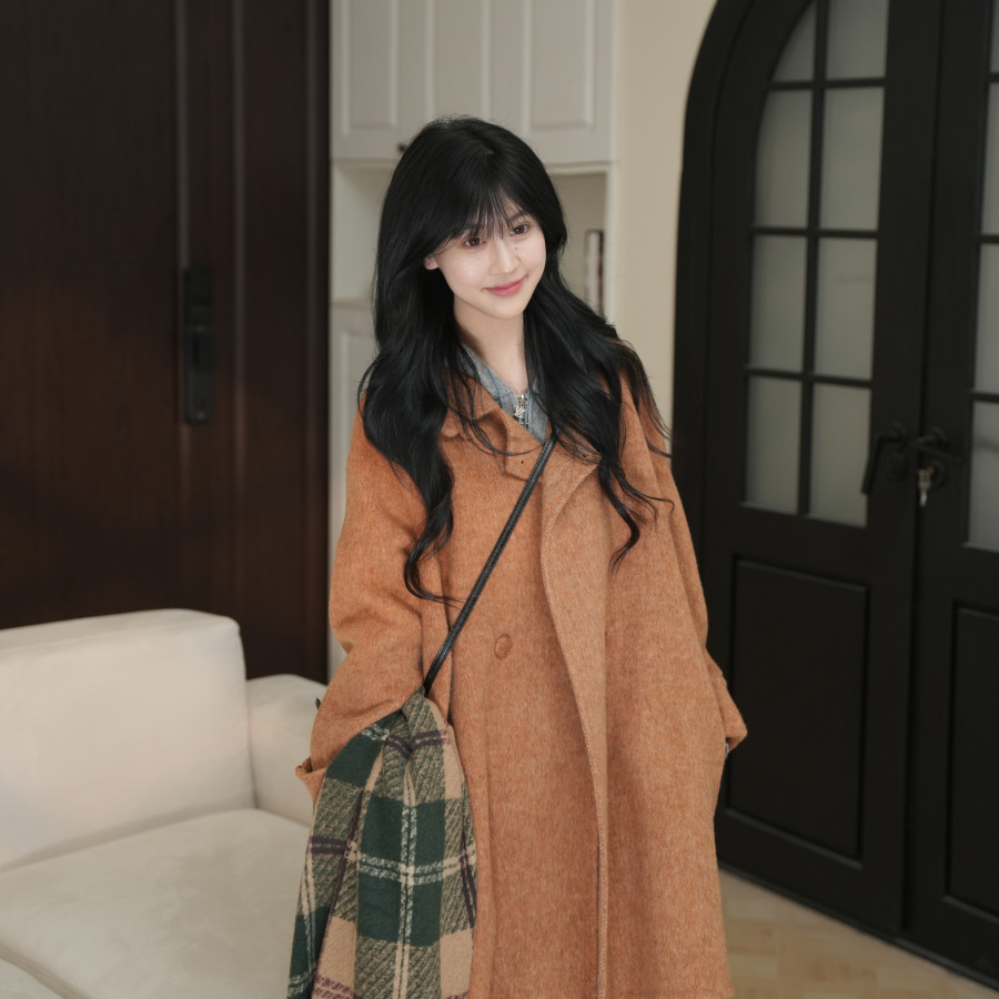 伊迪卡宽松气质百搭时尚中长款大衣女士秋冬款小个子双面毛呢大衣