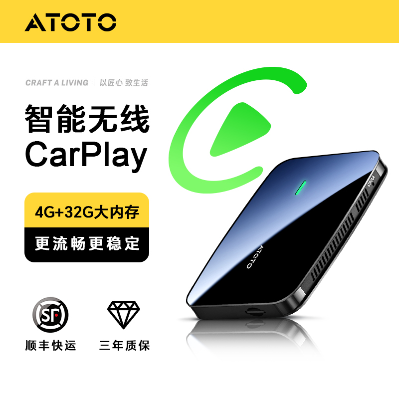 ATOTO无线CarPlay全新不卡顿不断连智能盒子车载车机互联转换器盒