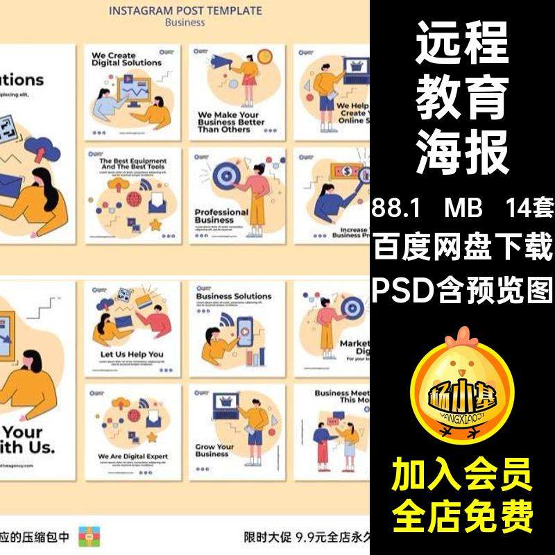 14套业务海报模板横幅PSD数据线上合作psd页面互联网素材远程教育