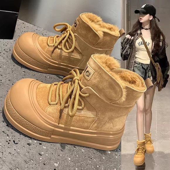 诗歌兰厚底雪地靴女2025冬季加绒保暖皮毛一体增高百搭防滑棉靴潮