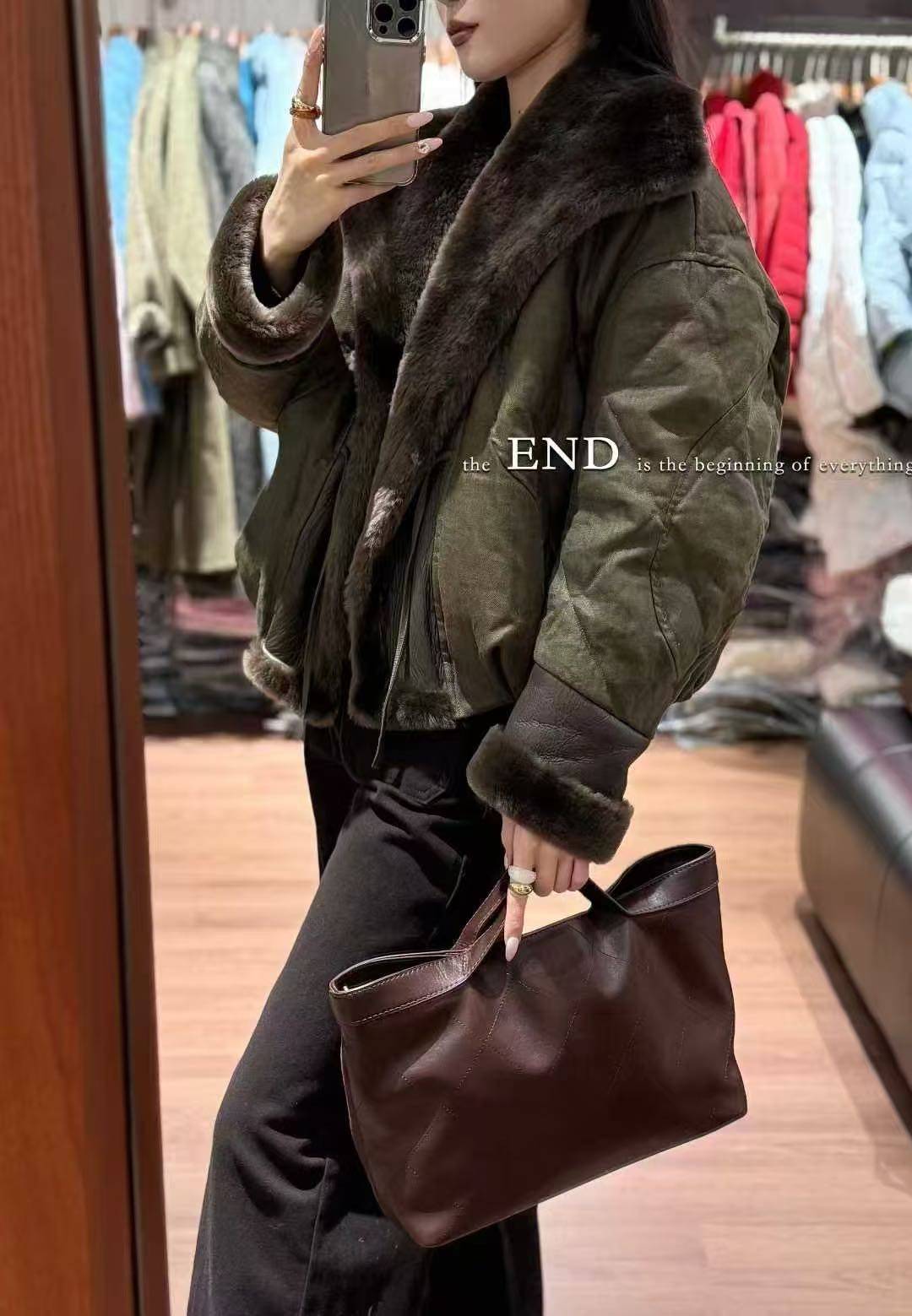 - 羊剪毛大衣女