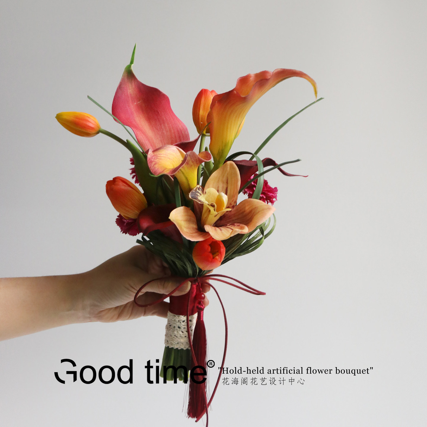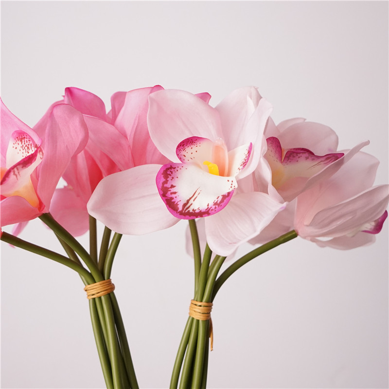 仿真花手感保湿6枝扎蕙兰花束仿真花家居装饰假花摆件拍摄道具花