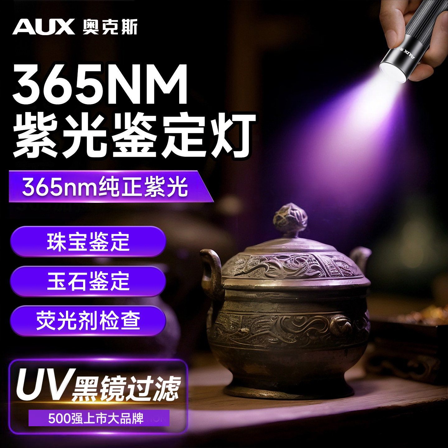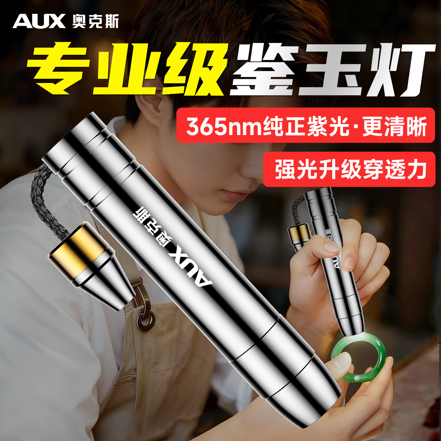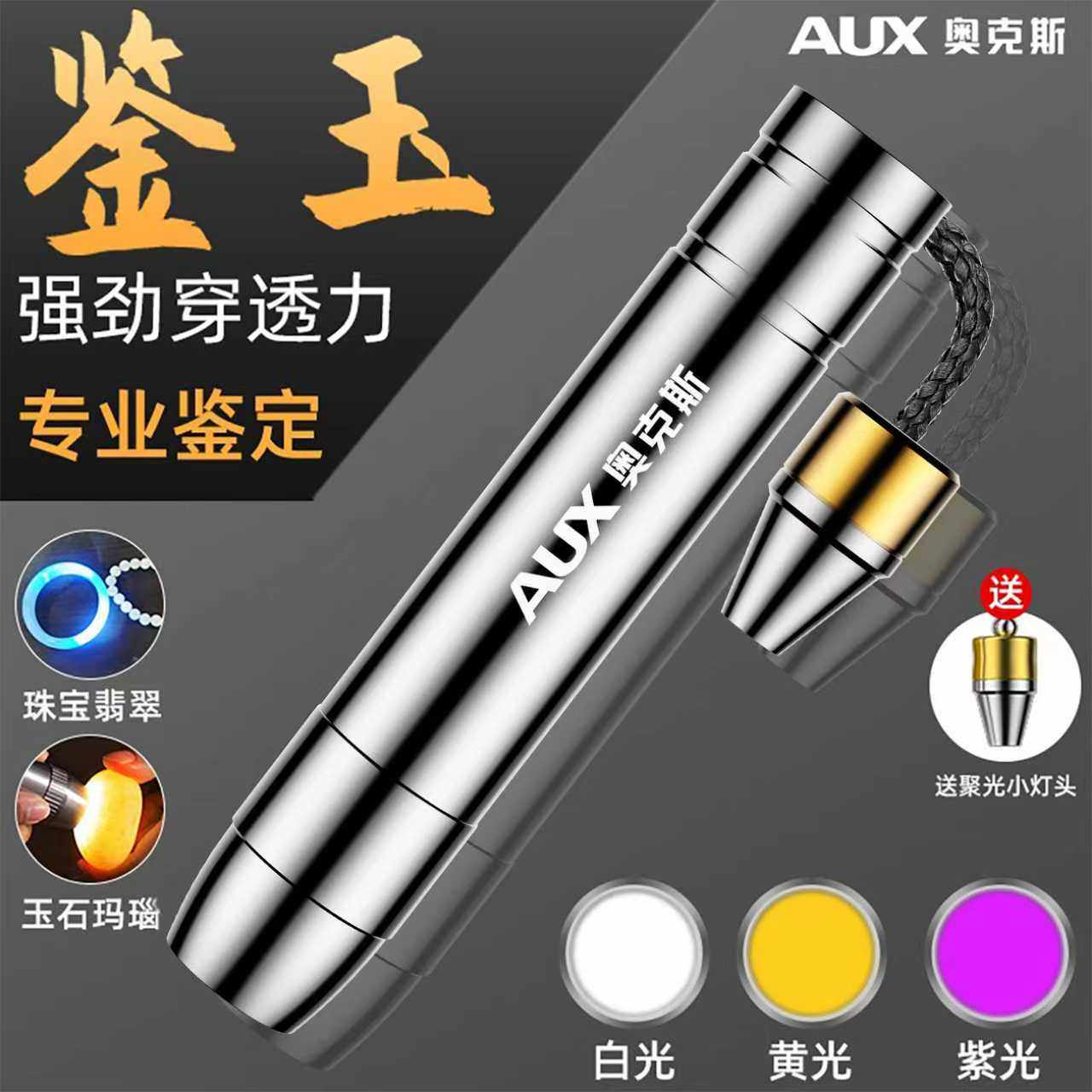 奥克斯玉石鉴定手电筒强光鉴别看珠宝翡翠专用专业365紫光灯文玩