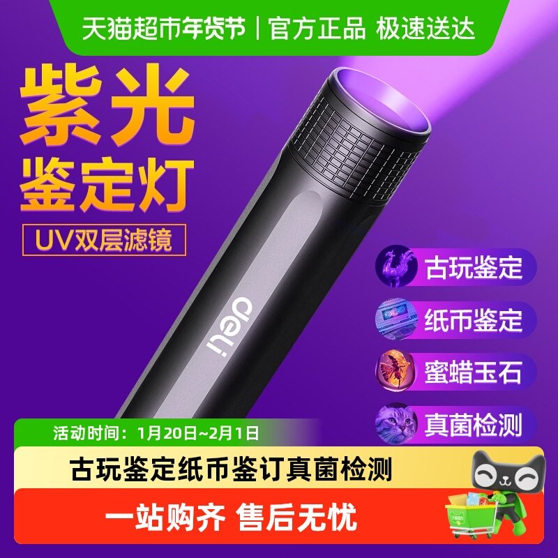 得力紫光灯鉴定玉石检测烟酒专用荧光剂验钞照手电筒强光紫外线笔