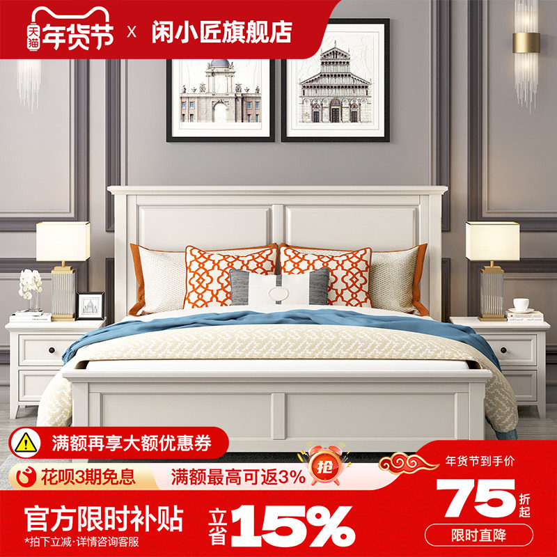 白色美式床纯实木床大床1.8米双人床卧室家具1.5m简约美式