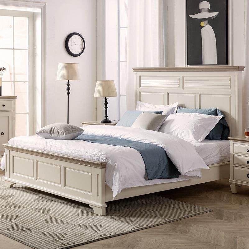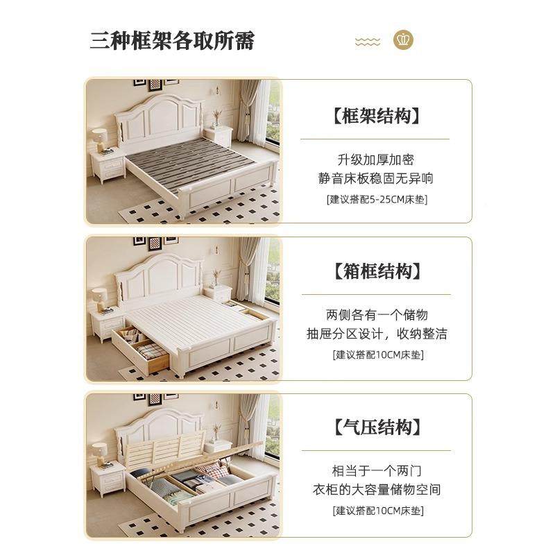 美式乡村纯实木床主卧双人床1.8米1.5米轻奢简约婚床象牙白储物床