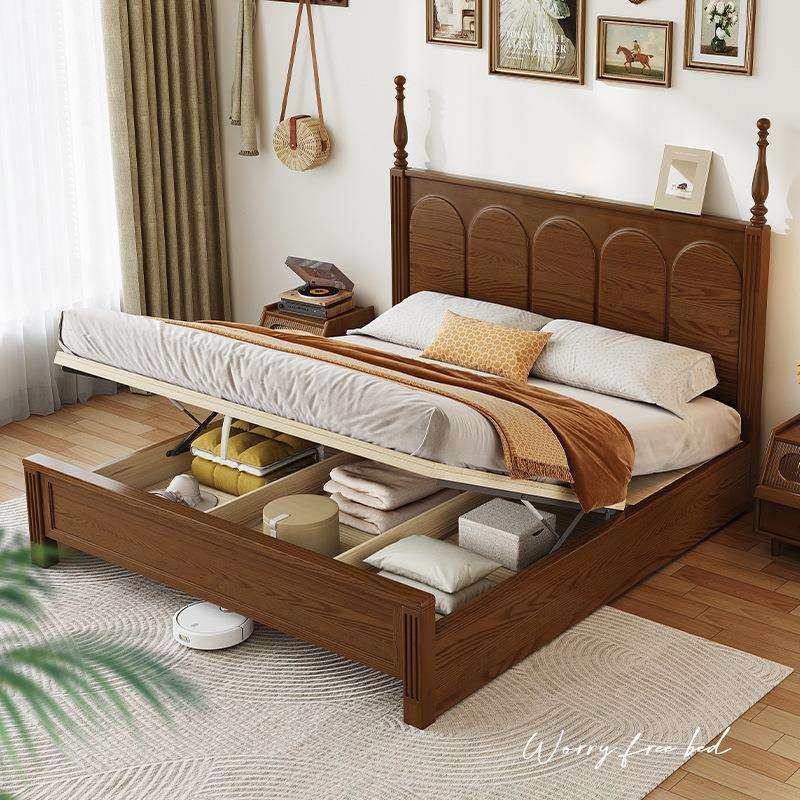 木鱼家具纯原木安娜床全实木法式复古美式1.8米双人主卧储物婚床